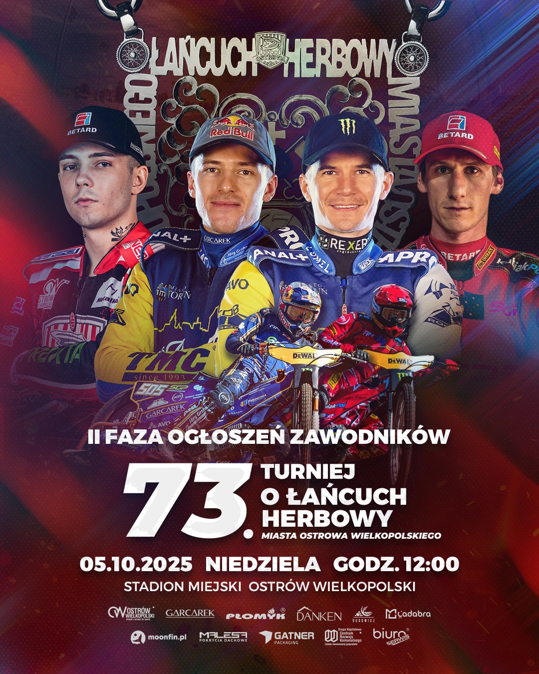 TŻ Ostrovia ogłosiła nazwiska kolejnych żużlowców, którzy wezmą udział w 73. Turnieju o Łańcuch Herbowy miasta Ostrowa Wielkopolskiego.