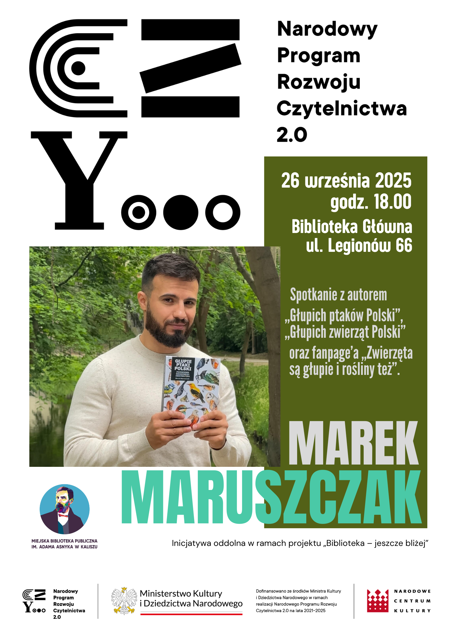 Już w najbliższy piątek, 26 września Bibliotekę Główną odwiedzi Marek Maruszczak – autor przezabawnego facebookowego profilu „Zwierzęta są głupie i rośliny też” oraz książek: „Głupie ptaki Polski. Przewodnik świadomego obserwatora” i „Głupie zwierzęta Polski i jak je znaleźć”.