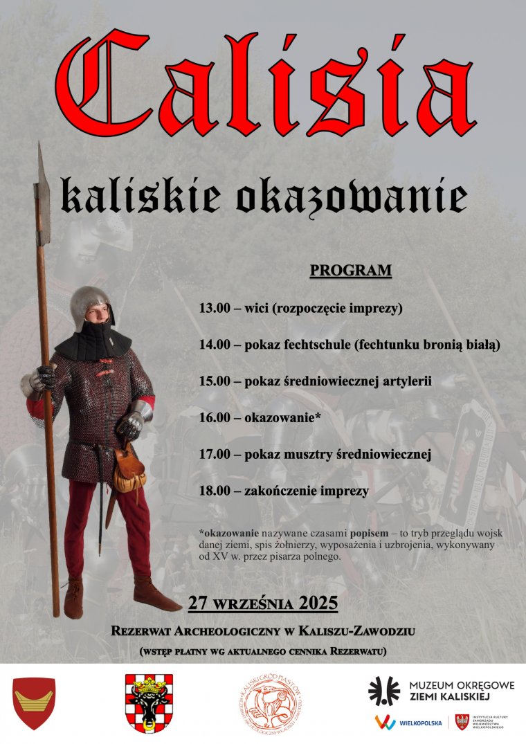 Cykl „Calisia” nawiązuje do kultury materialnej, głównie militarnej, przełomu XIV i XV stulecia. W tym roku związany będzie głównie z przygotowaniami Wielkopolan do wielkiej wojny z Zakonem z lat 1409–1411. Podczas wydarzenia można będzie zobaczyć jak wyglądał średniowieczny popis (tytułowe okazywanie) czyli przegląd wojsk sporządzany przed wyprawą wojenną. Trzeba będzie też uważać na krążących tu i ówdzie krzyżackich szpiegów.