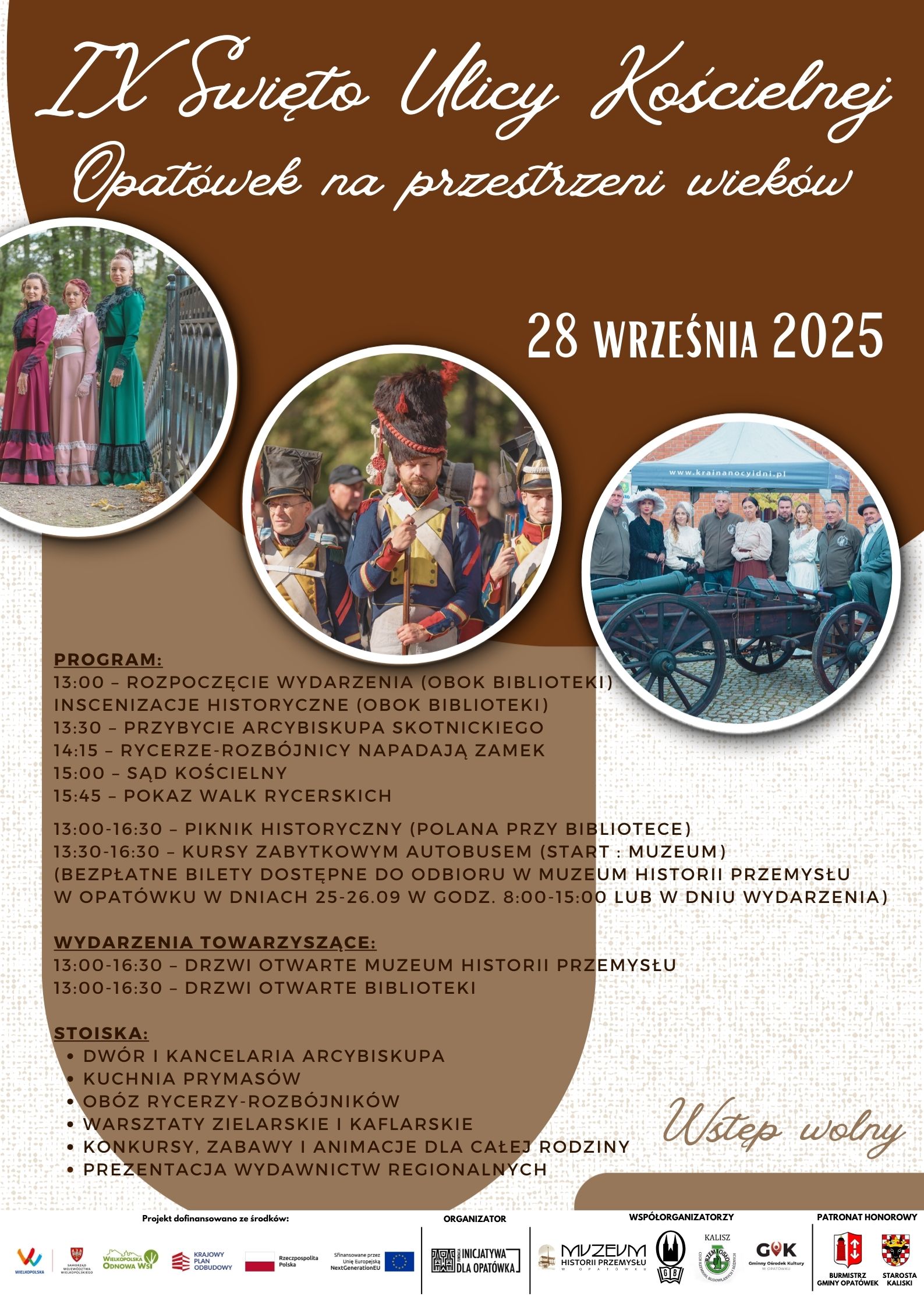 Już po raz dziewiąty spotkamy się w sercu Opatówka, by wspólnie odkrywać historię i klimat jednej z najstarszych ulic miasteczka! Tegoroczne Święto Ulicy Kościelnej w Opatówku odbędzie się 28 września od godz. 13:00, a hasło przewodnie brzmi: „Opatówek na przestrzeni wieków”.