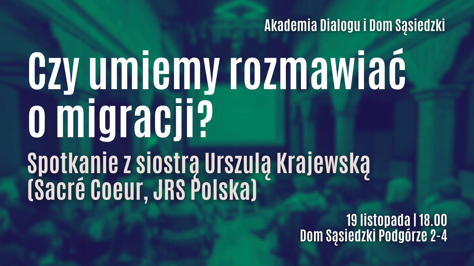 19.11. Czy umiemy rozmawiać o migracji? Spotkanie z siostrą Urszulą Krajewską