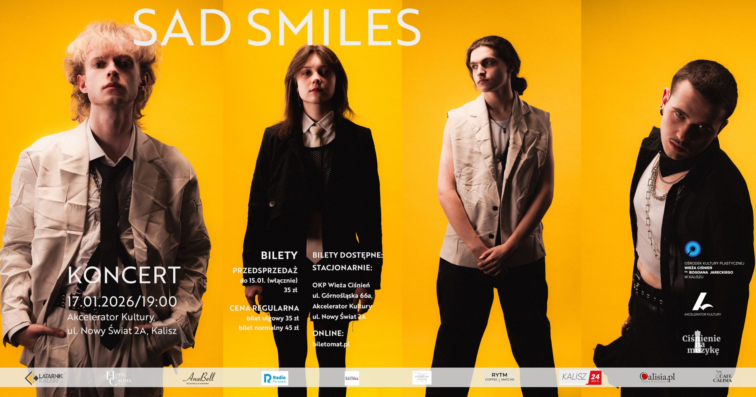 Branża nie szczędzi im zachwytów – podkreśla się ich pasję, charyzmę i zaskakującą dojrzałość, chociaż średnia wieku w kapeli to zaledwie 18 lat. Sad Smiles to czterech młodych muzyków, którzy mają już na koncie ponad 150 koncertów, między innymi przed Pawłem Domagałą, zespołem Raz Dwa Trzy, Pidżamą Porno czy grupą Happysad. Wystąpili na CieszFanów Festivalu oraz na Watermill w Niemczech i Takt Festivalu w Serbii (jako headliner), grali na showcasach Great September i Tak Brzmi Miasto. Ich single emitowane były w kilkudziesięciu stacjach radiowych z Czwórką, Trójką, Radiem 357, Antyradiem, Eską Rock i Radiem Nowy Świat na czele. Muzycznie pozostają nie do zaszufladkowania – najbliżej im do alternatywnego rocka, ale w ich utworach słychać znacznie więcej.