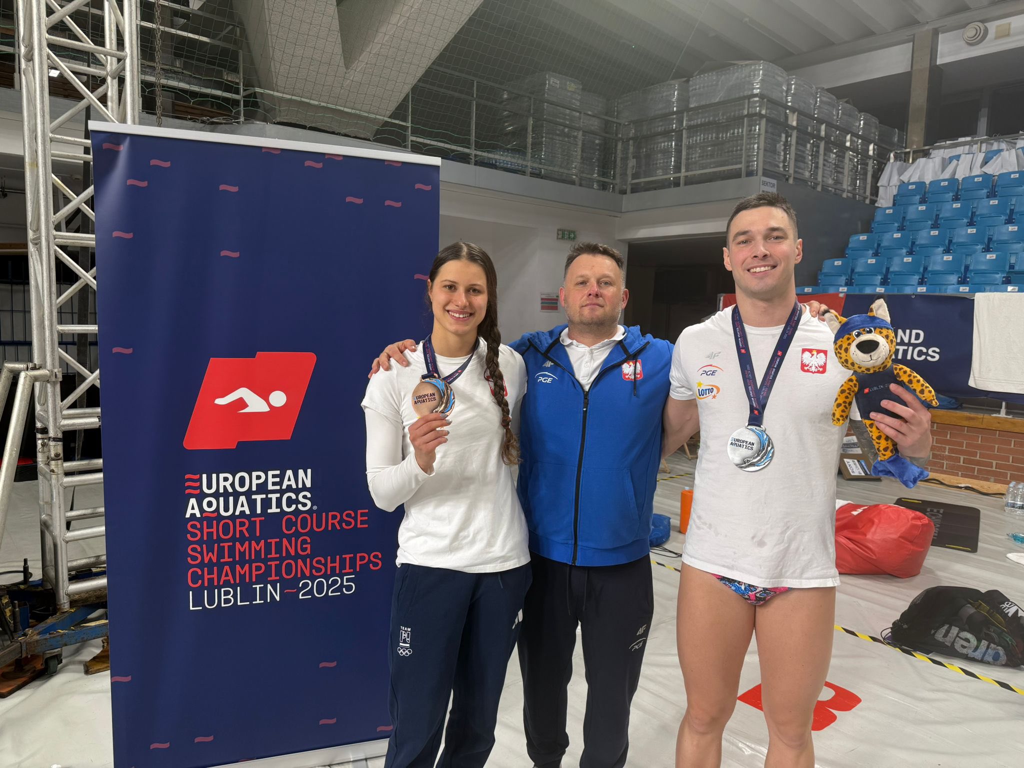 Jeszcze lepiej spisał się inny zawodnik kaliskiego klubu Piotr Ludwiczak, który rozpoczął sztafetę Polaków na 4×50 m mężczyzn. Nasz zawodnik wystartował w niej z Ksawerym Masiukiem, Kamilem Sieradzkim oraz Mateuszem Chowańcem. Polacy przegrali tylko z Włochami, zdobywając srebrny medal ME. Trzecie miejsce zajęli Chorwaci.