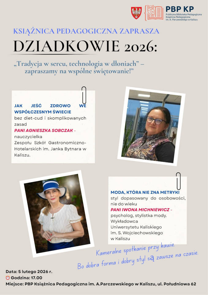 Z okazji Dnia Babci i Dziadka Książnica Pedagogiczna zaprasza na kameralne spotkanie przy kawie – „Dziadkowie 2026: tradycja w sercu, technologia w dłoniach.”