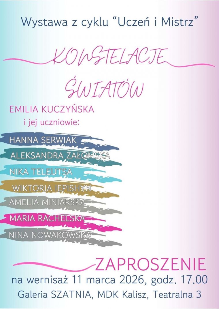 Młodzieżowy Dom Kultury w Kaliszu zaprasza na wernisaż wystawy „Konstelacje Światów”.