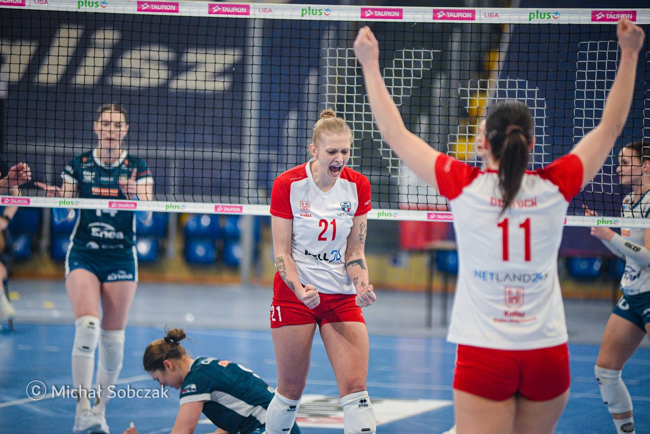 \- To był bardzo dobry mecz pełen emocji, walki i jakościowej siatkówki. Myślę, że był też atrakcyjny dla kibiców. W pierwszym secie rywalki nas zaskoczyły i zagrały bardzo odważnie, ale w kolejnych partiach to my przejęłyśmy kontrolę nad spotkaniem – mówiła po meczu środkowa NETLAND MKS-u Kalisz Sonia Kubacka. – Po słabszym początku poprawiłyśmy praktycznie każdy element – zagrywkę, przyjęcie, blok i atak. Zaczęłyśmy grać swoją siatkówkę i to przyniosło efekt. Teraz skupiamy się już na rewanżu w Pile.