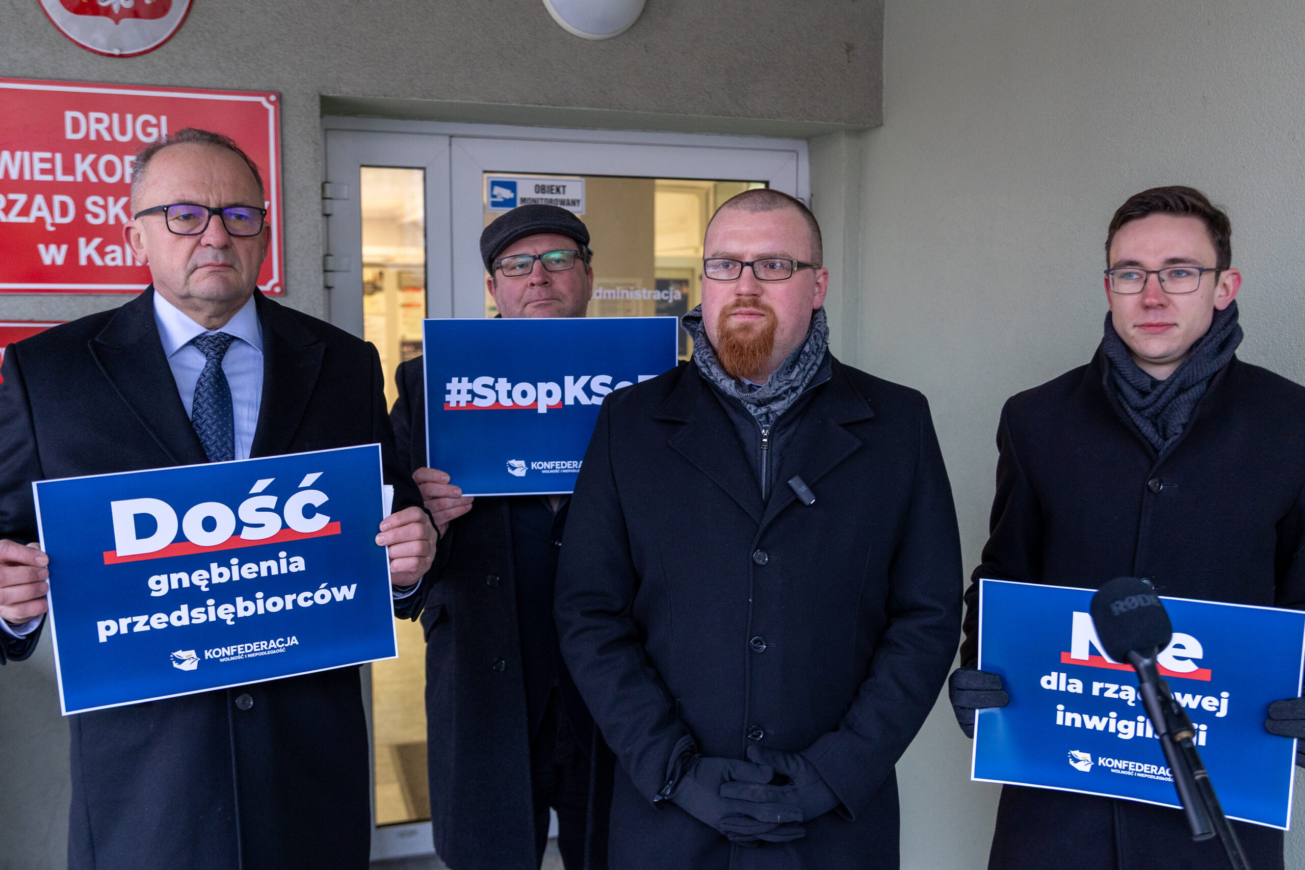 POLITYKA. „KSeF to narzędzie do inwigilacji”. Konfederacja protestowała przed urzędami skarbowymi